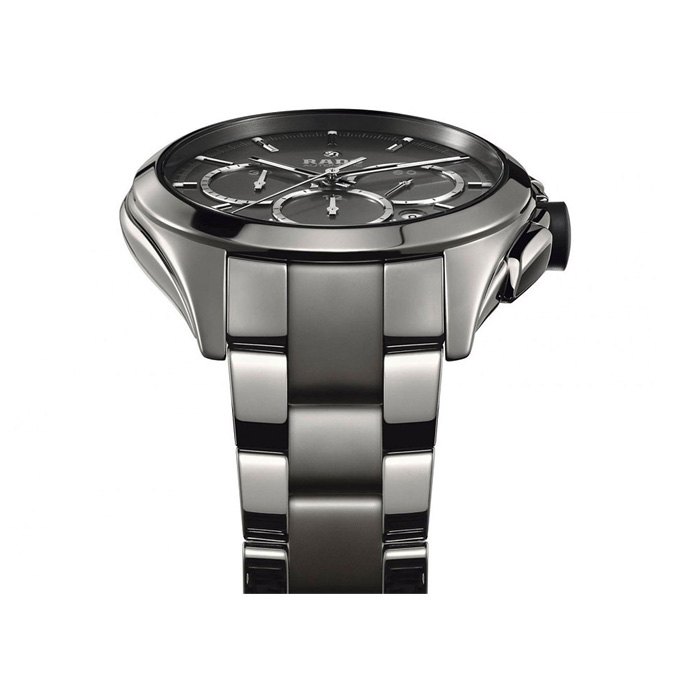 ساعت مچی عقربهای «رادو» مدل «Rado 650.0276.3.011» از سری «Hyperchrome» یکی از لوکسترین ساعتهای کلاسیکاسپرت رادو است که از طراحی جذاب، کارآمد و کیفیت و دقتی منحصربهفرد بهره میبرد. برای این ساعت یک موتور خودکار در نظر گرفته شده است که بدون نیاز به باتری کار میکند و انرژی مکانیکی آن از حرکات معمول دست تامین میشود. با توجه به قابلیتهای کرنوگراف یا زمانسنج، اهمیت حرکتیبودن موتور و بینیازی به باتری دوچندان میشود. در طراحی موتور پرقدرت «ETA 2894-2» در این مدل، 37 سنگ قیمتی استفاده شده است که ضمن به حداقلرساندن استهلاک، مزایایی چون افزایش دقت و طول عمر بالای موتور را به همراه دارد. همچنین این موتور میتواند در صورت ساکنماندن ساعت، تا 45 ساعت پس از اولین حرکت دست یا ساعت به عملکرد خود ادامه دهد. این تمام چیزی نیست که این مدل را به یک ساعت لوکس و متمایز تبدیل ساخته است. در این مدل از سری هایپرکروم، یک قاب یکپارچه به قطر 45 میلیمتر و بندی بسیار جذاب از جنس سرامیک پیشرفتهی پلاسما در نظر گرفته شده که با بخشی از جنس Stainless Steel همراه است. سرامیک پیشرفتهی پلاسما (Plasma High-Tech Ceramic) از جمله مشتقات خاص سرامیک است که برای اولین بار مهندسان شرکت رادو از آن در طراحی ساعتهای مچی استفاده کردند. این ماده که از تمام ویژگیهای ممتاز سرامیک پیشرفته نظیر وزن کم، سازگاری با انواع پوست و ایجادنکردن حساسیت پوستی، مقاومت و استحکام بالا و همچنین کاملا ضدخشبودن بهرهمند است، از ظاهری براقتر و فولادین نیز بهره میبرد. بدین ترتیب، در کنار استحکام بالا، وزن سبک و سازگاری با انواع پوست معمولی و حساس از دیگر ویژگیهای ممتاز و قابلتوجه این ساعت محسوب میشود. مقاومت بالای بدنه دربرابر آب (10ATM) نیز از دیگر مشخصات بارز کیفی این مدل است که در تمامی شرایط روزمره (شستوشوی دست و بارش باران) و همچنین در شرایطی که ساعت در تماس نسبتا بلندمدتی با آب قرار میگیرد، از نفوذ آب به بدنه جلوگیری میکند. این ساعت لوکس و شیک را میتوان یکی از جذابترین ساعتهای لوکس کلاسیکاسپرت برشمرد که با توجه به مشخصات ظاهری و کیفی یادشده، هر مرد شیکپوشی را شیفتهی اصالت، کیفیت و طراحی بینظیر خود میکند.